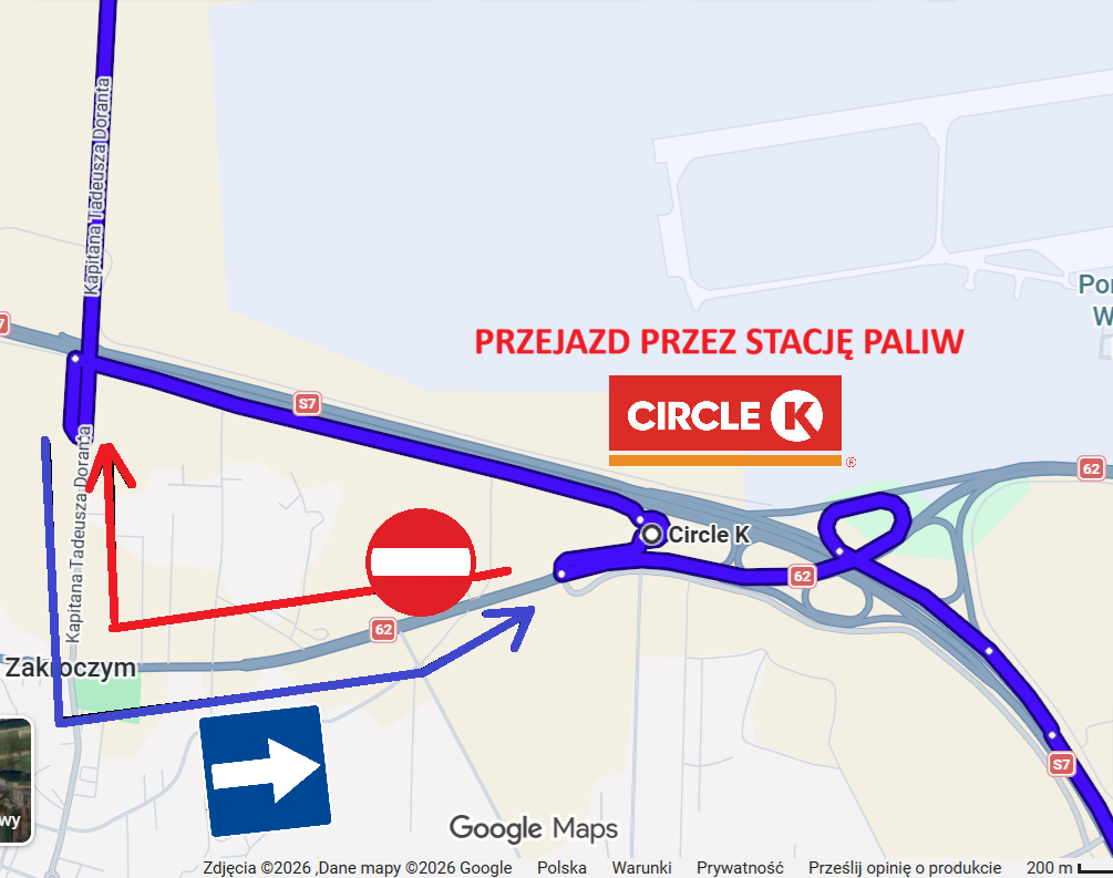 Aby sprawnie do nas dotrzeć, rekomendujemy alternatywny przejazd przez stację paliw Circle K Zakroczym – szczegóły przedstawiamy na załączonej mapce.